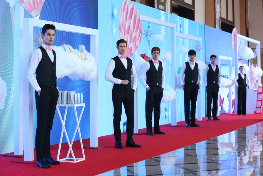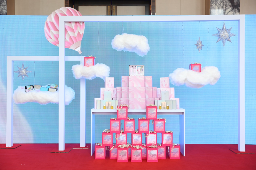 这一次,,靓白芯肌将带领我们去往的是南法的蔚蓝海岸。。。。为了打造身临其境的感觉,,,lewin乐玩首次尝试极具视觉震撼力的环屏巨幕。。一踏入会场,,,便如同置身在纯净阳光的度假天堂,,,,粉白相间的热气球,,,,柔美细腻的白色云朵,,,以及背景LED屏幕上清晰播放的南法风情片,,勾勒出一派温柔曼妙的南法风光。。发布会以自由随性的鸡尾酒会形式展开,,,,不停歇的爵士乐和穿梭其中的外模侍者,,,让每一个与会者都深深沉醉在这片异国海洋风情之中。。